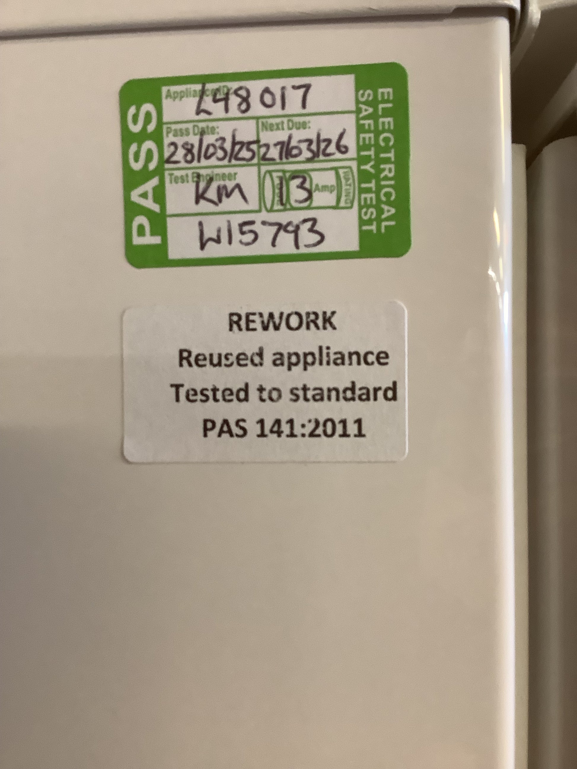 Rework is audited by the Environment Agency and Reuse Network and all our white goods are PAT Tested.