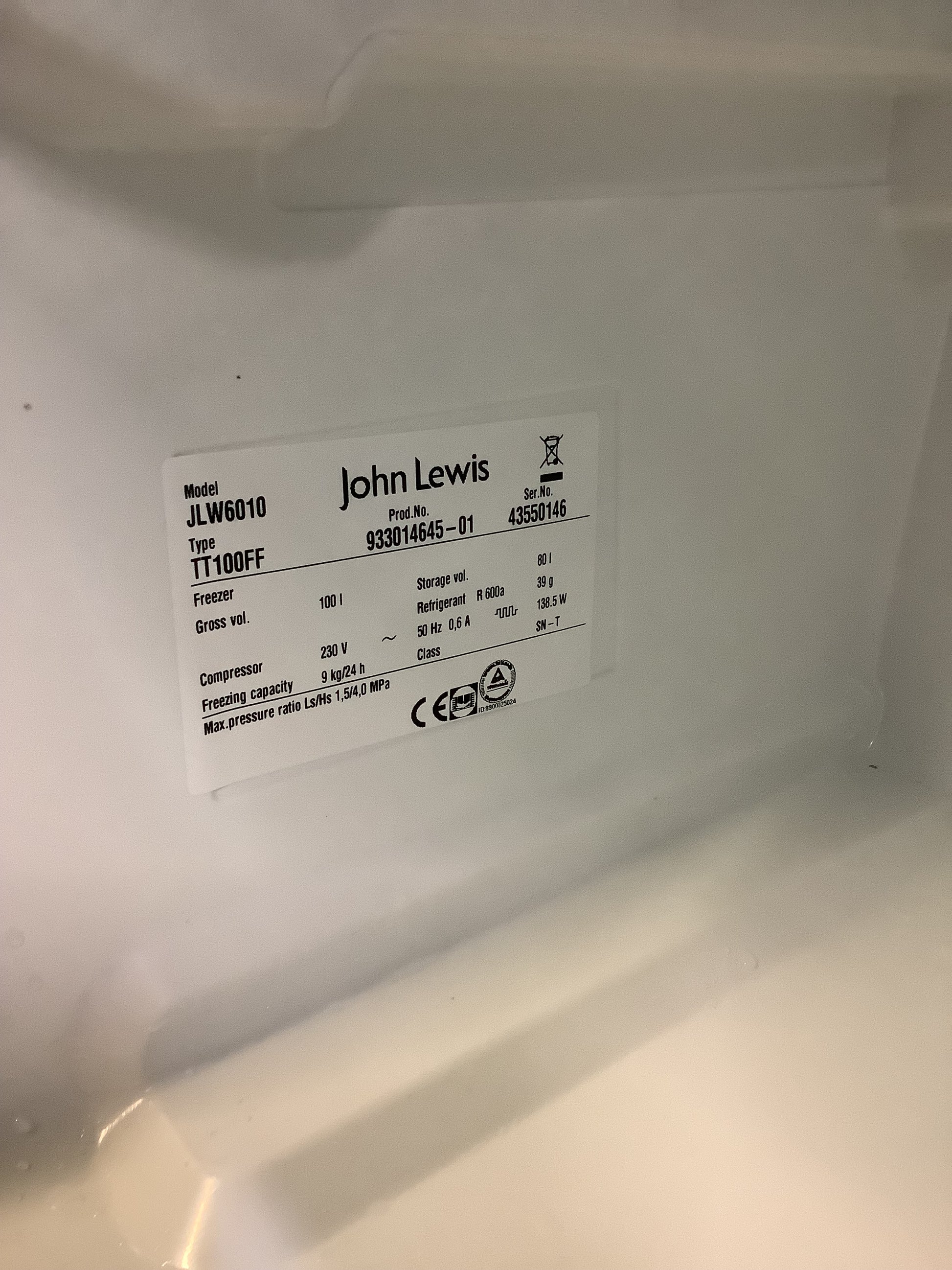 John Lewis Undercounter Freezer JLW6010 L49314