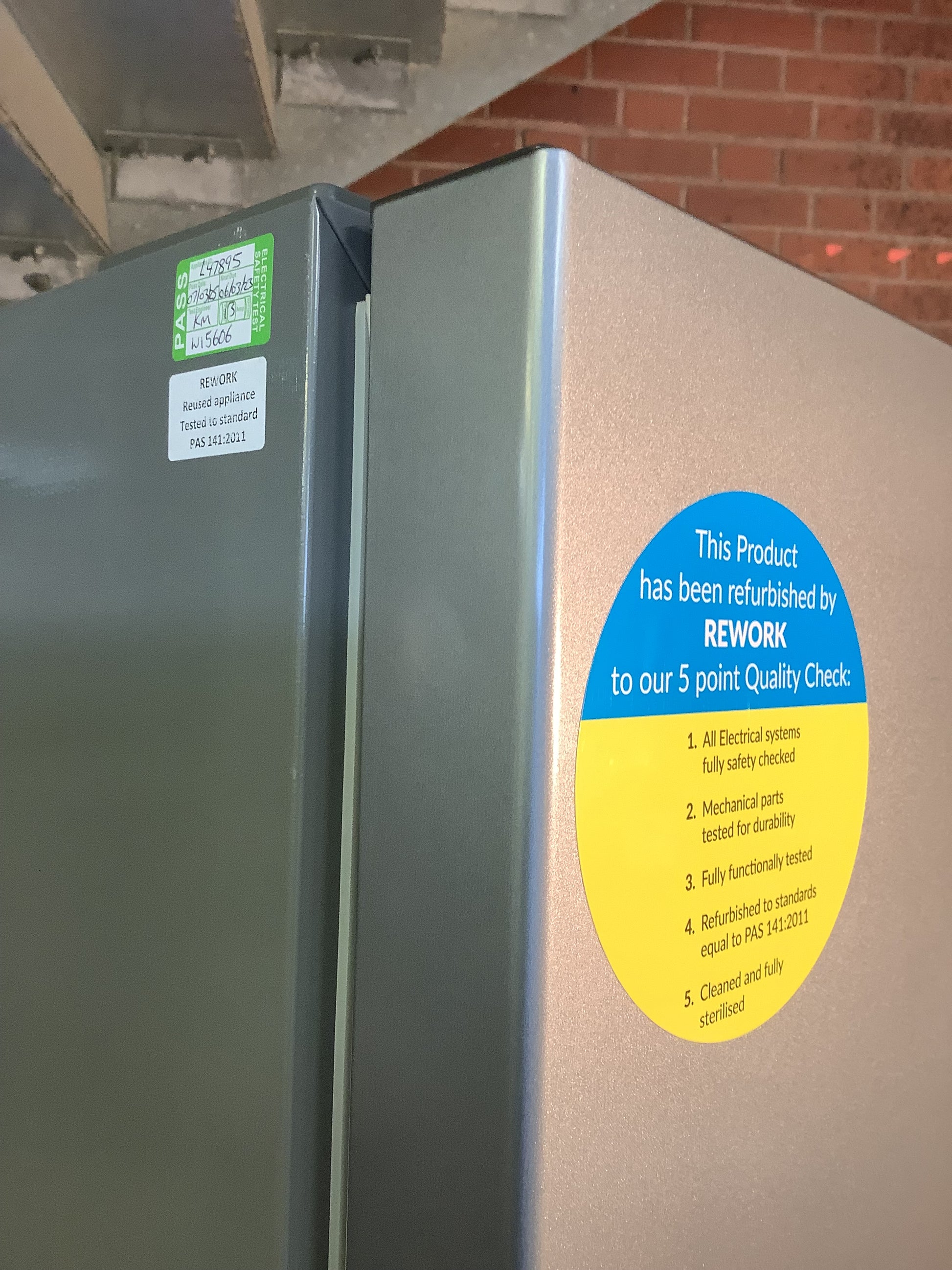 Rework is audited by the Environment Agency and Reuse Network and all our white goods are PAT Tested.