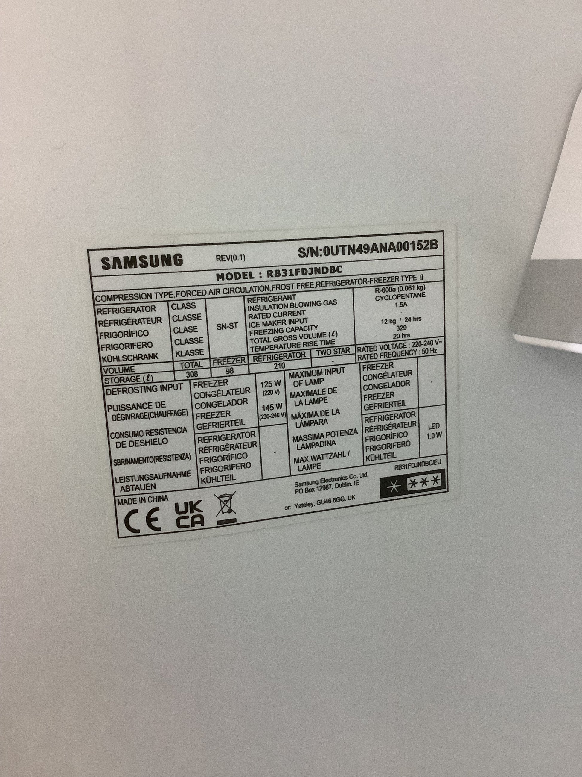 Fridge Capacity: 210L